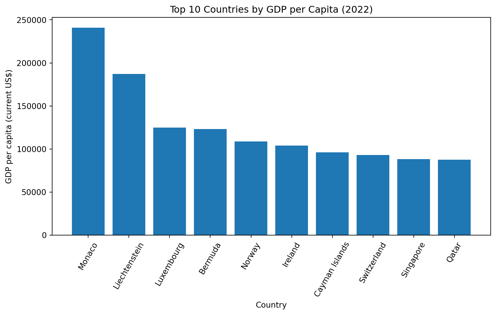 Next, I compare the most extreme values by looking at the top 10 countries in GDP per capita.